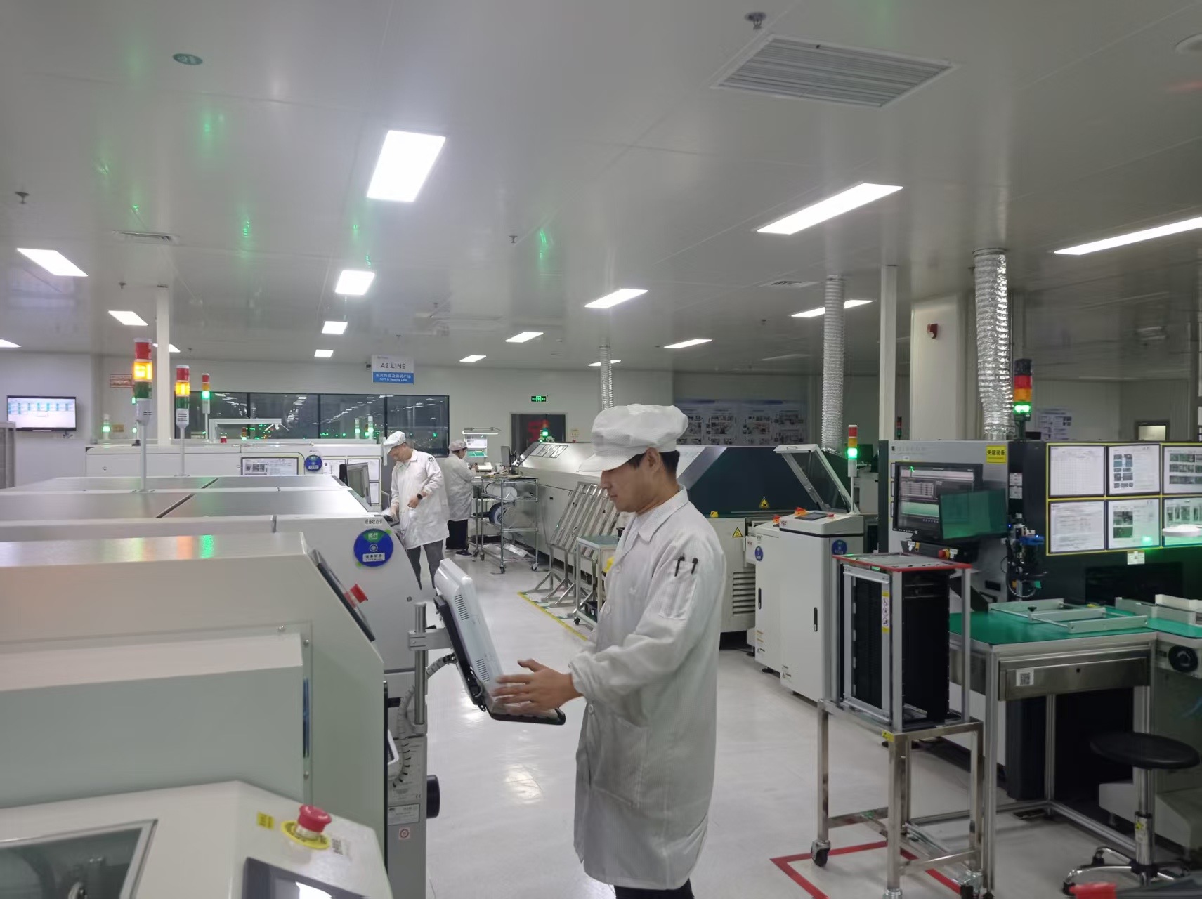 深夜十一點(diǎn),位于武漢江夏區(qū)的武漢楚冠捷公司ECU恒溫?zé)o塵車間依然燈火通明。機(jī)械臂以160秒/套的節(jié)拍精準(zhǔn)作、SMT貼片機(jī)全速運(yùn)轉(zhuǎn),公司生產(chǎn)線正全力沖刺“保質(zhì)量、保交付”。